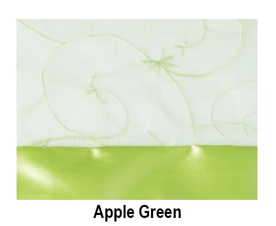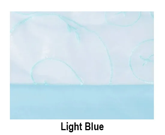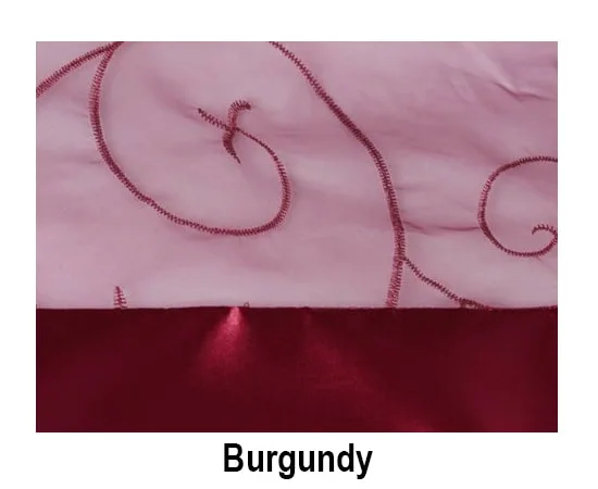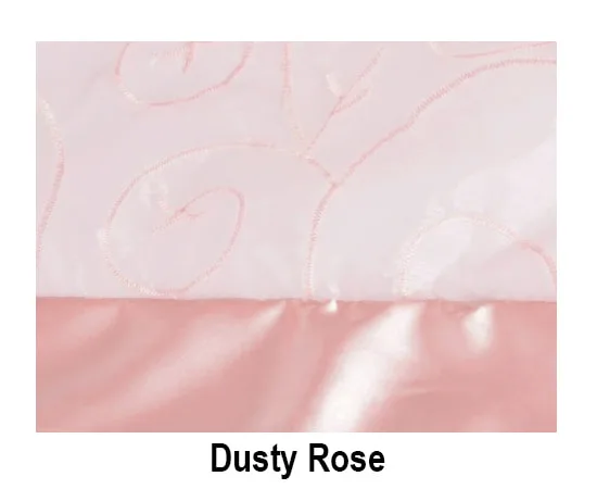 Satin Trim Organza Swirl linens are available as runners, sashes (no trim), & tablecloths (overlays), unless otherwise stated. Standard tablecloth sizes are as follows: